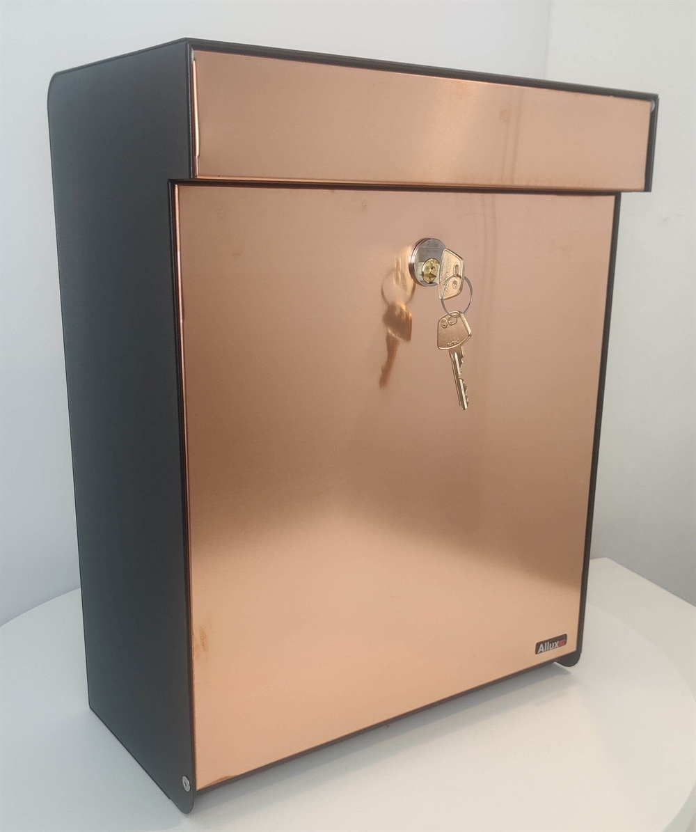 Allux Grundform postkasse med KOBBER front i et nyt og spændende stilrent design.