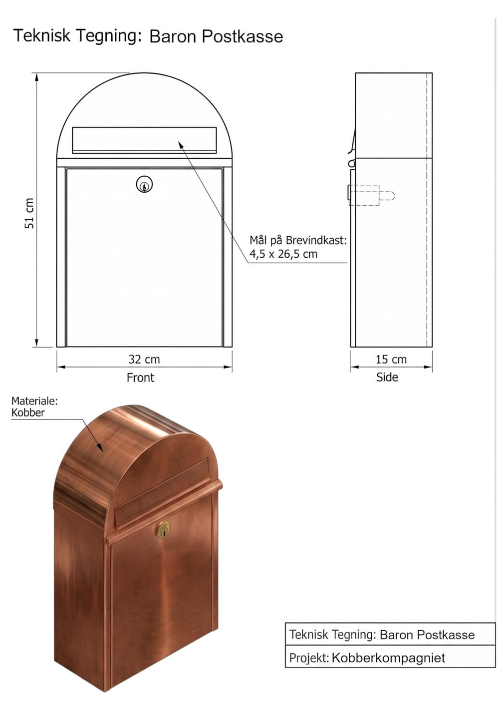 BARON kobberpostkasse håndlavet af danske kobbersmede