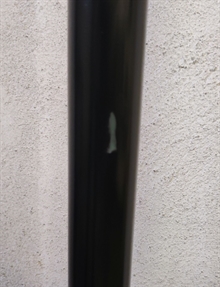 Mindre afskrabning nederst på standeren, se foto.