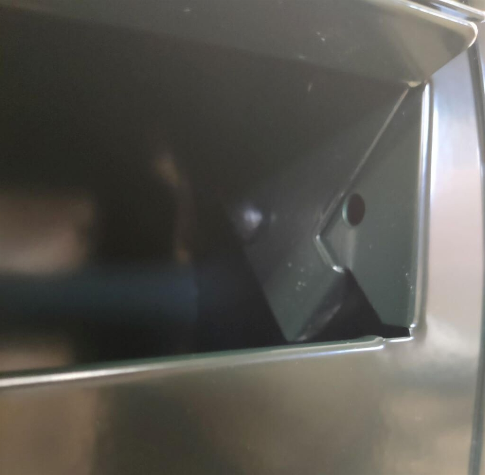 Placeres ind igennem låge og ind i side på brevklap, hvor der er et hul i side af brevindkastet.