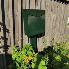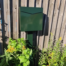 Postkassen kan monteres direkte på væg eller plankeværk, eller på en kraftig stander i samme farve som postkassen.