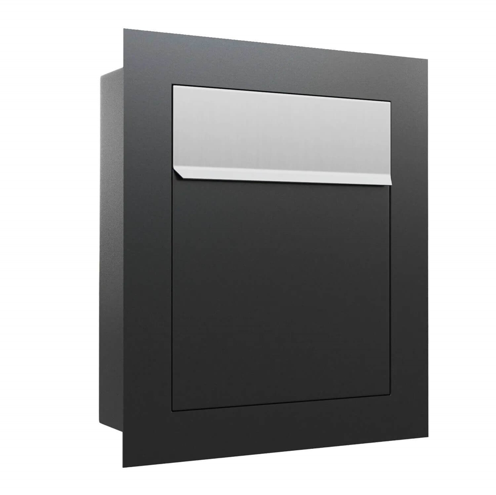 Indbygnings postkasse model : BARI EXCLUSIVE i Antracit grå lakering med brevklap i Rustfrit stål.