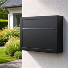 Postkassen er fremstillet af 1,0 mm rustfrit stål, type AISI 430, en ferritisk legering med 16% krom. Dette materiale er særligt velegnet til mildt korrosive miljøer, hvilket sikrer en lang levetid. Den smukke sorte pulverlakering i RAL9005 giver ikke kun et elegant og moderne udtryk, men beskytter også mod vejr og vind.