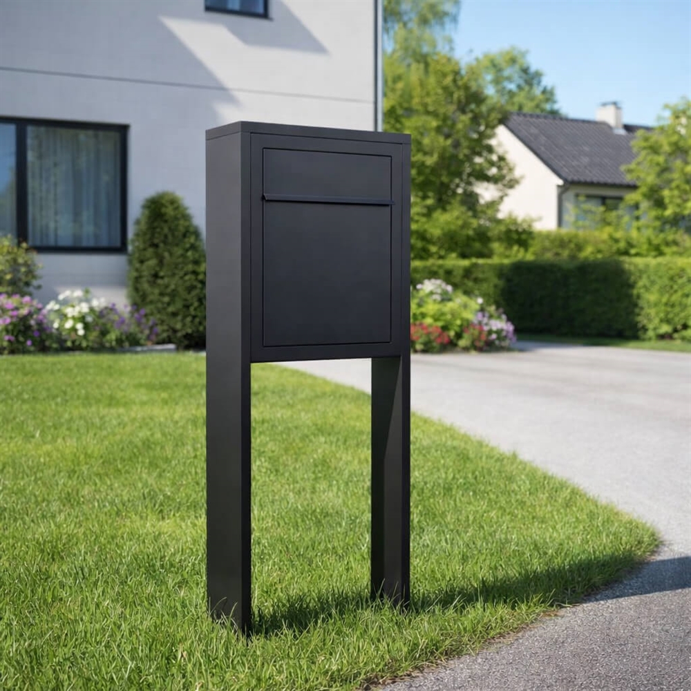 SORT postkasse med stander - model BASE, med skjult lås.