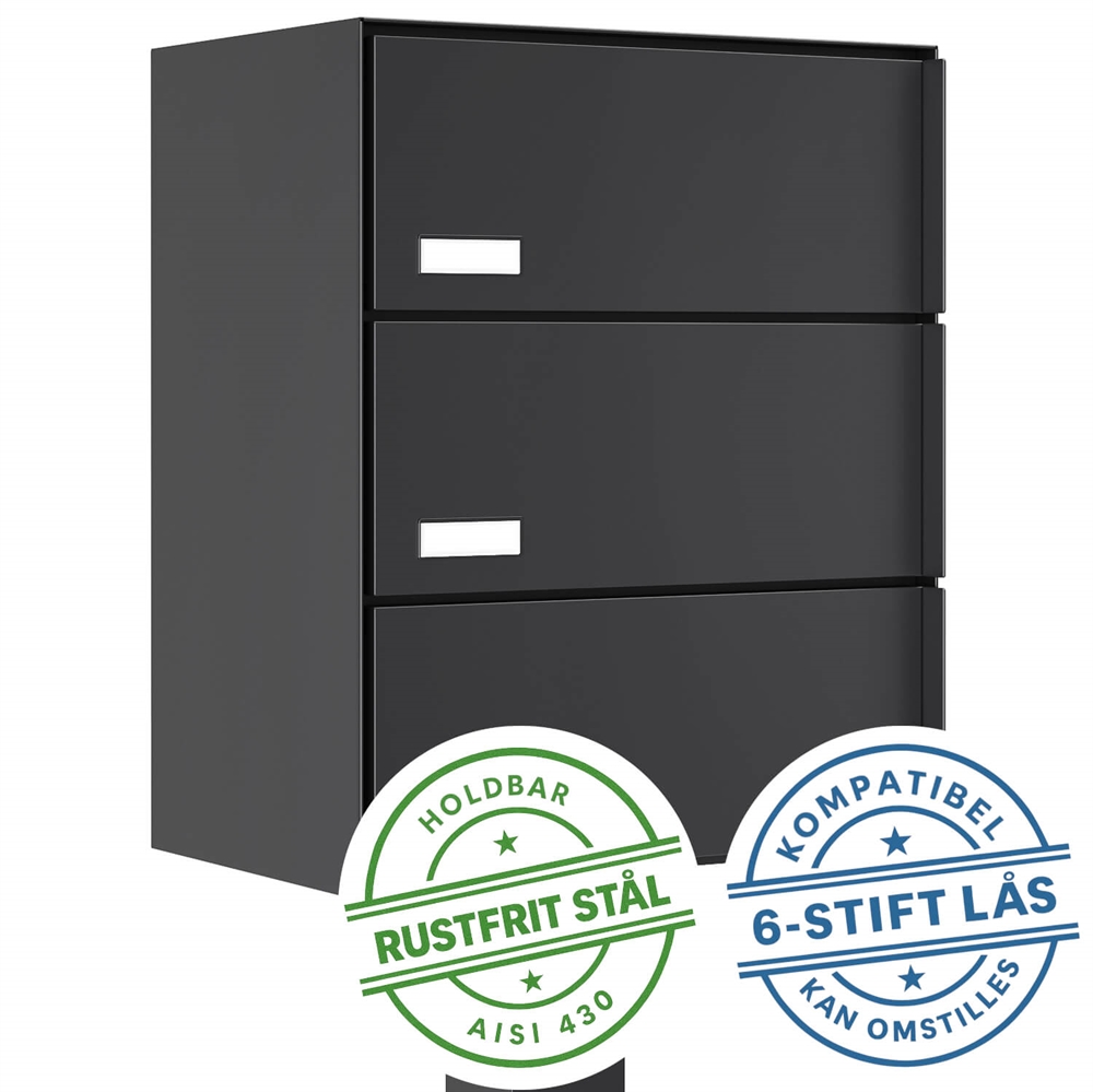KOPENHAGEN-3 Exclusive postanlæg 3 enheder m. stander - 6 stift lås