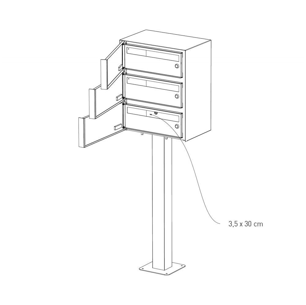 Tilbehør inkluderet: Postkassestander med monteringsmateriale, 6 stifts låseIncl. 3 nøgler til hver.
