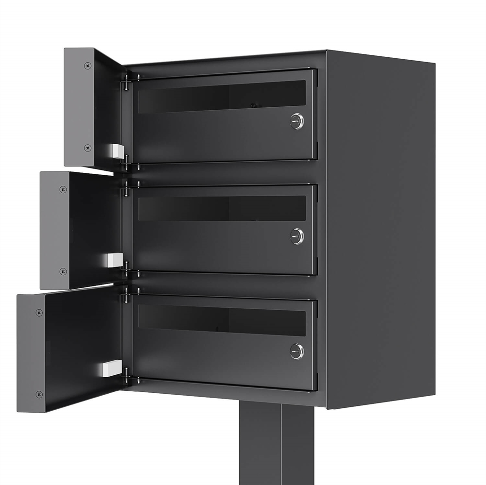 KOPENHAGEN-4 Exclusive Postkassesystem med stander - til 3 Boliger, monteret med Danske 6 stift låse.