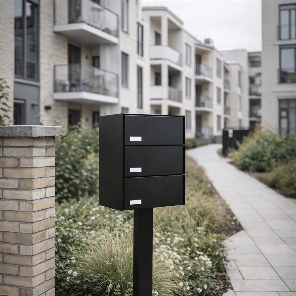 Vores dobbelte postkassesystemer er udviklet specifikt til behovene i dobbelthuse og små boligkomplekser. Hvert system er lavet af pulverlakeret rustfrit stål, et robust materiale, der er både holdbart og vejrbestandigt. Den skjulte lås sikrer, at din post opbevares sikkert og beskytter mod uautoriseret adgang.