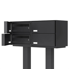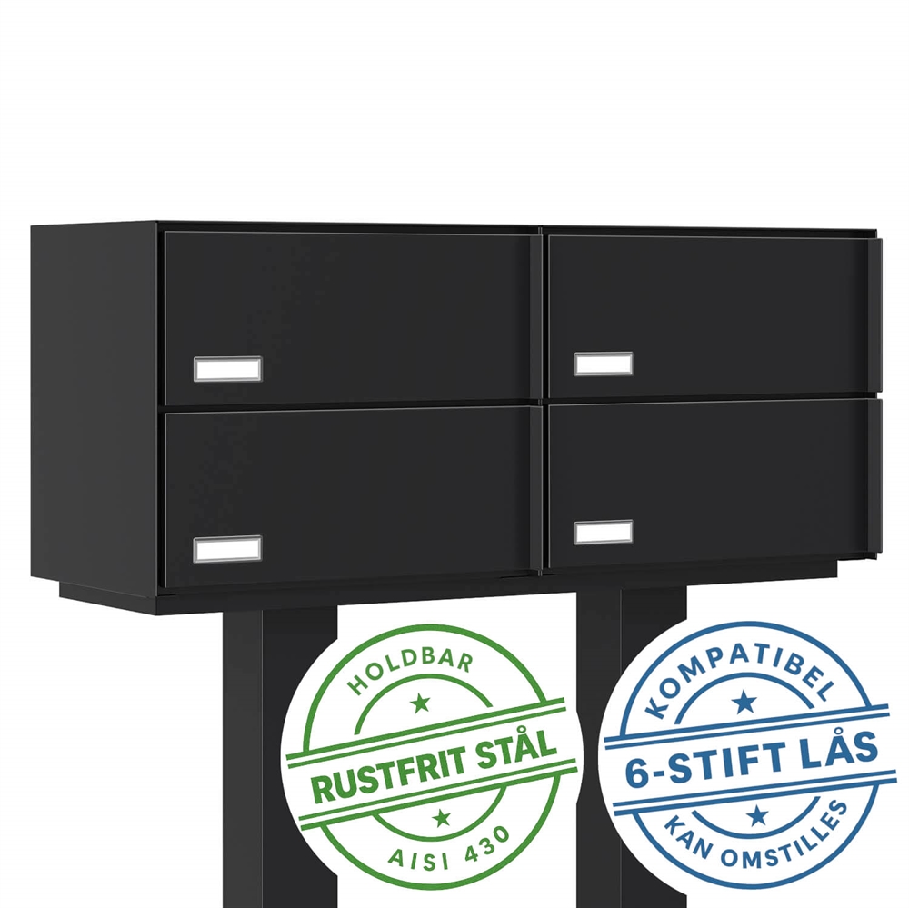 KOPENHAGEN-4 Exclusive Postkassesystem med stander - til 4 Boliger, monteret med Danske 6 stift låse.