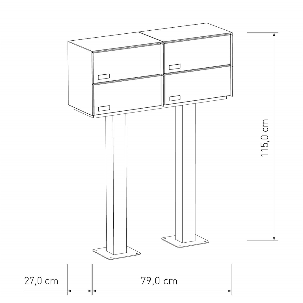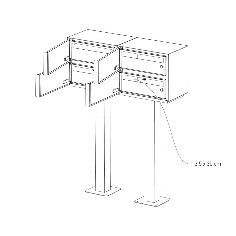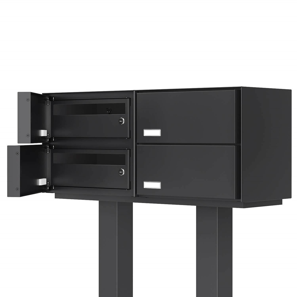 Vores dobbelte postkassesystemer er udviklet specifikt til behovene i dobbelthuse og små boligkomplekser. Hvert system er lavet af pulverlakeret rustfrit stål, et robust materiale, der er både holdbart og vejrbestandigt. Den skjulte lås sikrer, at din post opbevares sikkert og beskytter mod uautoriseret adgang.