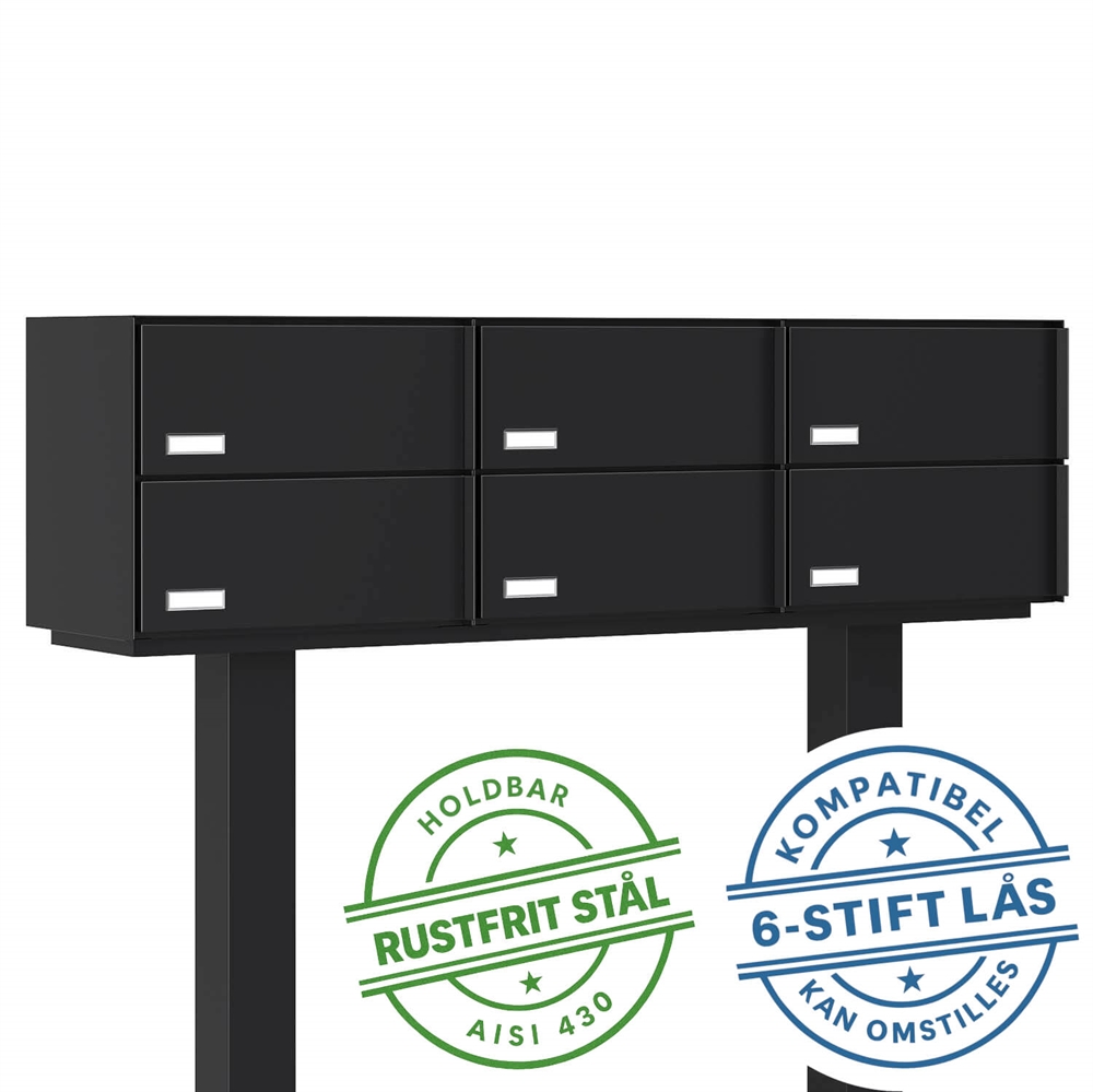 KOPENHAGEN-6 Exclusive Postkassesystem med stander - til 6 Boliger, monteret med Danske 6 stift låse.