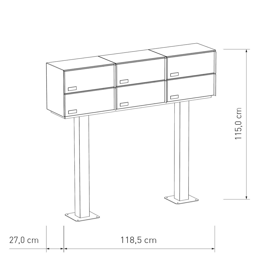 KOPENHAGEN-6 Exclusive postanlæg 6 enheder m. stander 6 stift lås - Horisontal