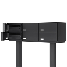 Vores dobbelte postkassesystemer er udviklet specifikt til behovene i dobbelthuse og små boligkomplekser. Hvert system er lavet af pulverlakeret rustfrit stål, et robust materiale, der er både holdbart og vejrbestandigt. Den skjulte lås sikrer, at din post opbevares sikkert og beskytter mod uautoriseret adgang.