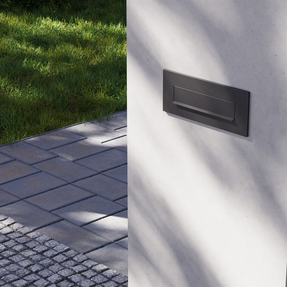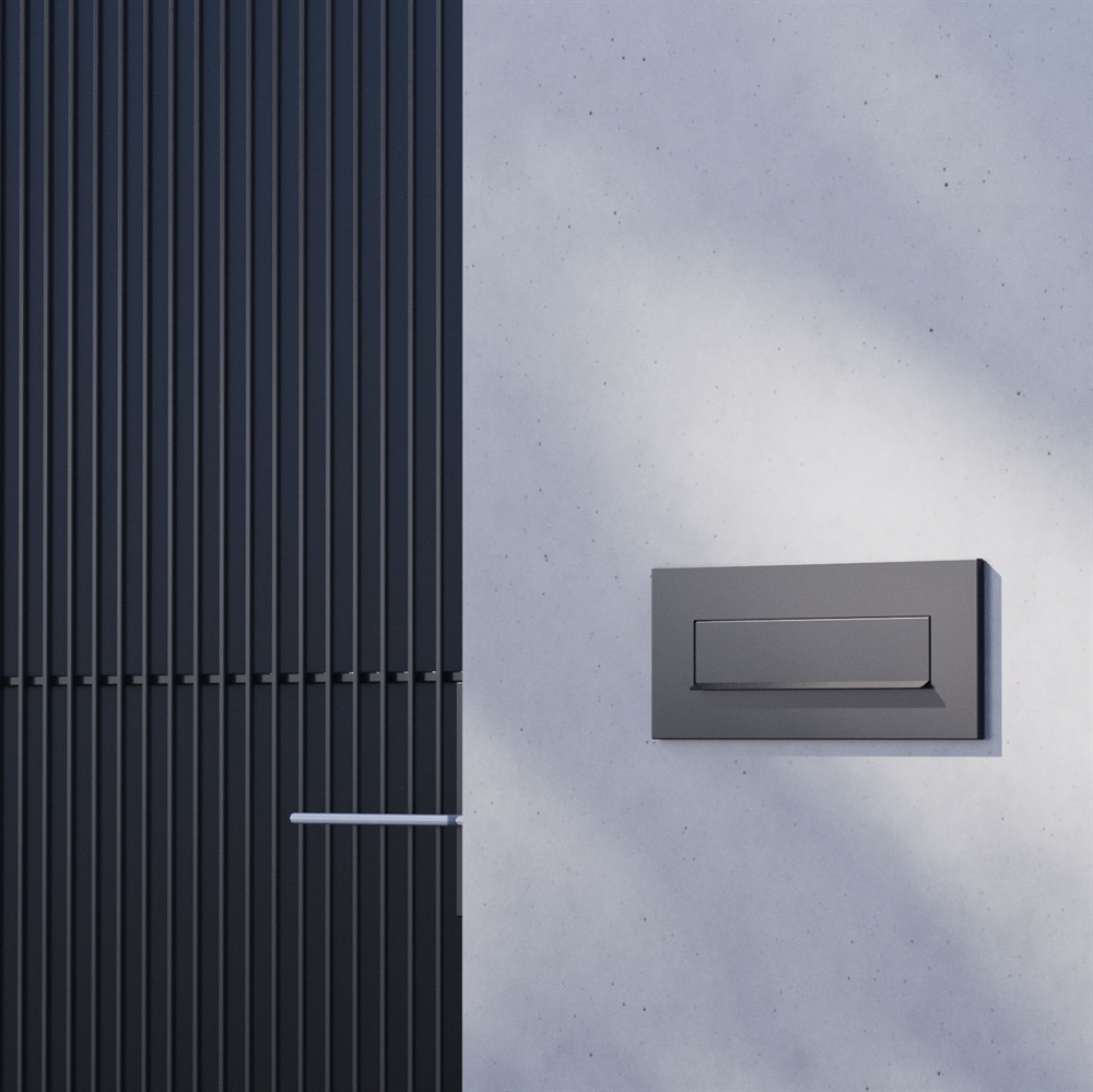 • Diskret luksus: Postkassen integreres flot i muren og fremstår som en naturlig del af facaden - uden
