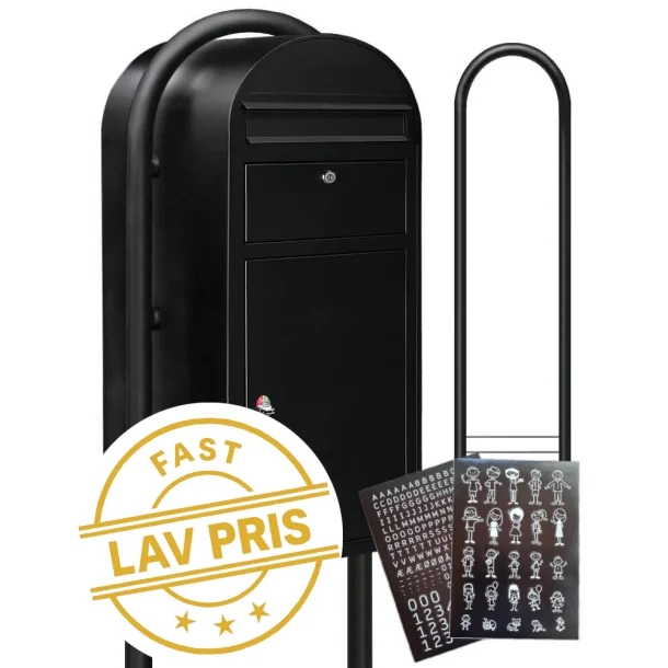 Pakke-postkassesæt m. Stander og Hvidt Tal/Bogstavark - SORT BobiCargo Pakkepostkasse
