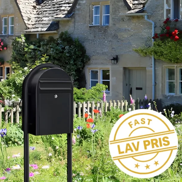 Inklusiv nytårssikring som virker ved at aflåse brevindkastet med en skrue indvendigt i postkassen.