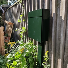 Standeren i samme RacingGreen farve som postkassen skaber et elegant, sammenhængende udtryk, der klæder både klassiske og moderne boliger.