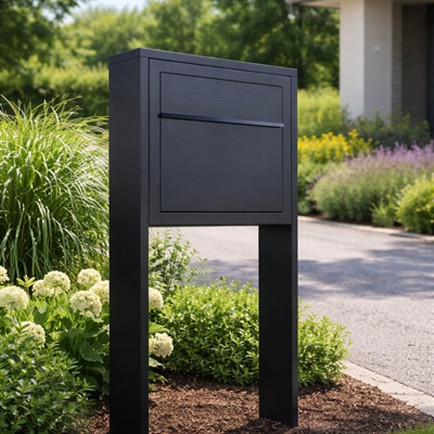 Sort ELEGANCE STANDARD postkasse med stander - med skjult lås - klassisk design