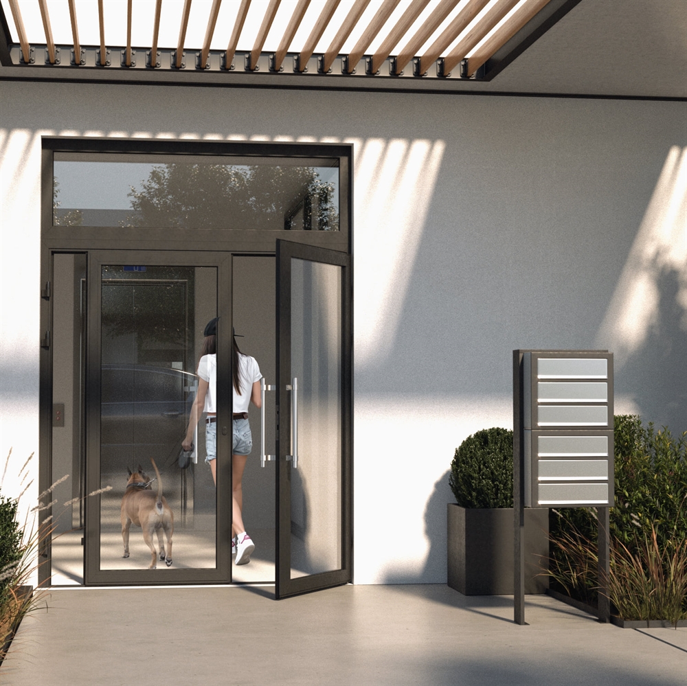 Postkasseanlægget består af 1 sektion med hver 6 enheder inkl. stander med flanger til montering i flise.
