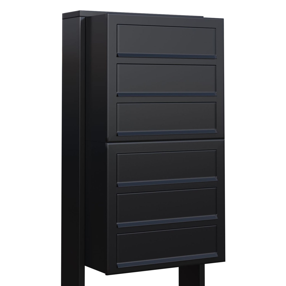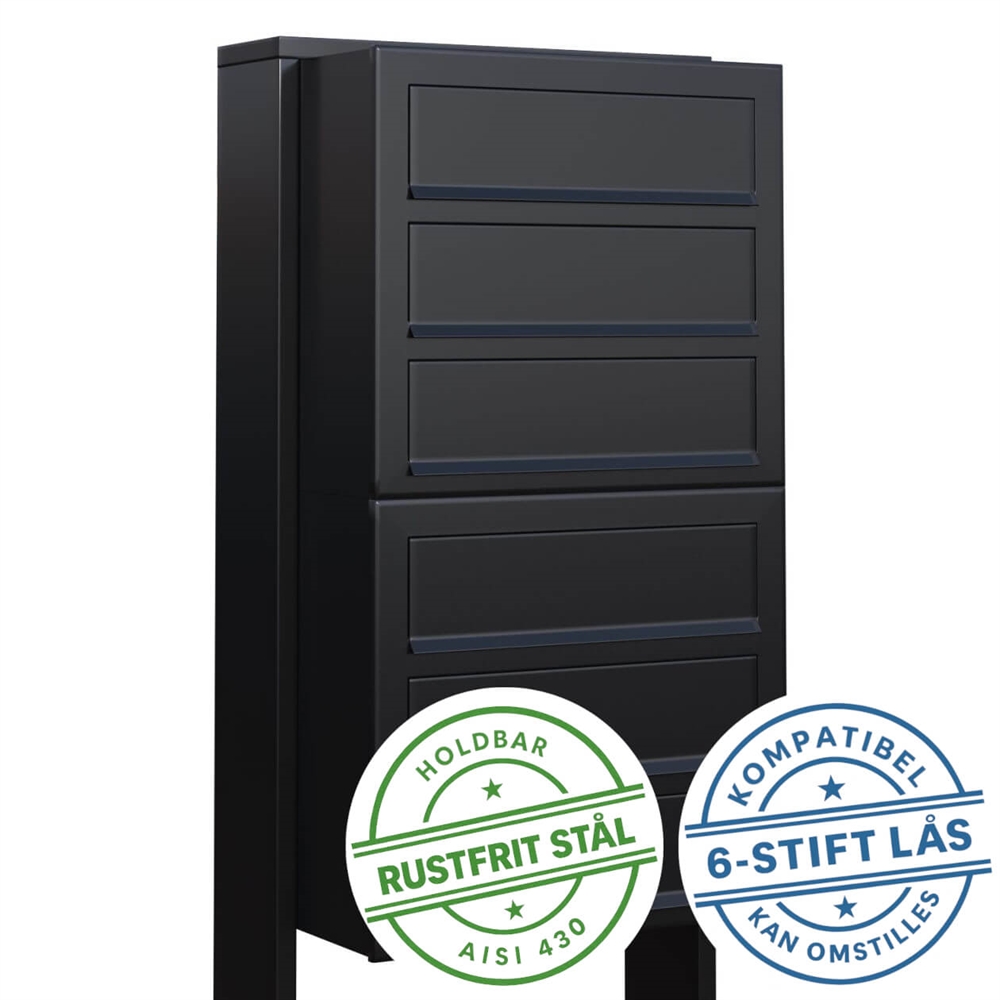 Sort Postkasseanlæg med Stander - 6 enheder - CUBE Exclusive - Rustfrit stål